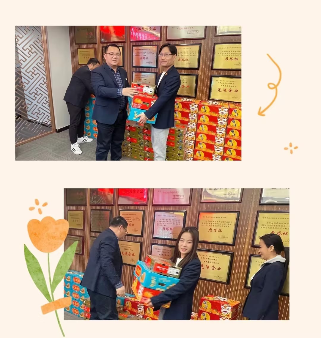 貳零貳肆甲辰龍年笑語(yǔ)辭舊歲,喜迎金龍年又是一年春節(jié)至,福利滿滿到心田在2024年新春佳節(jié)來(lái)臨之際為表達(dá)對(duì)員工濃濃的新年祝福感謝大家一年來(lái)的辛勤付出立豪集團(tuán)為全員發(fā)放春節(jié)福利 ,最是歲寒情暖時(shí),殷殷關(guān)懷沁人心。2月1日上午,集團(tuán)副總經(jīng)理賴吉軍、副總經(jīng)理桂志平代表集團(tuán)向總部員工發(fā)放了暖心的春節(jié)福利,提前為大家送上節(jié)日的祝福和問(wèn)候!